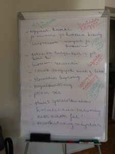 2018. március 12-én irodánk a Pál Apostol Katolikus Általános Iskola és Gimnázium 8. osztályos tanulóit is fogadta. Munkatársaink játékos formában beszélgettek a fiatalokkal arról, hogy mire van szükség egy vállalkozás elindításához: az osztály vezéregyéniségeiből cégvezetők lettek, az ötletemberekből kreatív igazgatók, a szószólókból marketing tanácsadók. A gyerekek egymással együttműködve kijelölték, hogy kinek mi lesz a szerepe és feladata egy virtuális vállalkozásban, közben pedig szebbnél szebb termékek – egészségtudatos gyümölcs kelyhek és innovatív szendvicsek – kerültek ki a kezeik alól. A tanulságot a gyerekek maguk fogalmazták meg: a sikerhez nemcsak ötlet és pénz szükséges, az eredmény érdekében együttműködni is tudni kell, hiszen egy vállalkozást összefogni, és úgy vezetni, hogy a célt is elérjük, bizony nem könnyű feladat. Ebbe és az elkészült termékekbe is belekóstolhattak a diákok.
